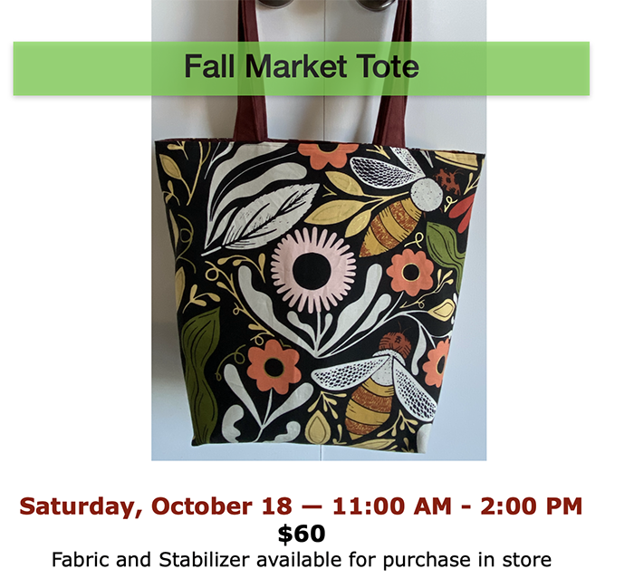 Fabric packages are available for purchase. All you need to bring is yourself, the joy to learn and a sewing machine (or rent in store).