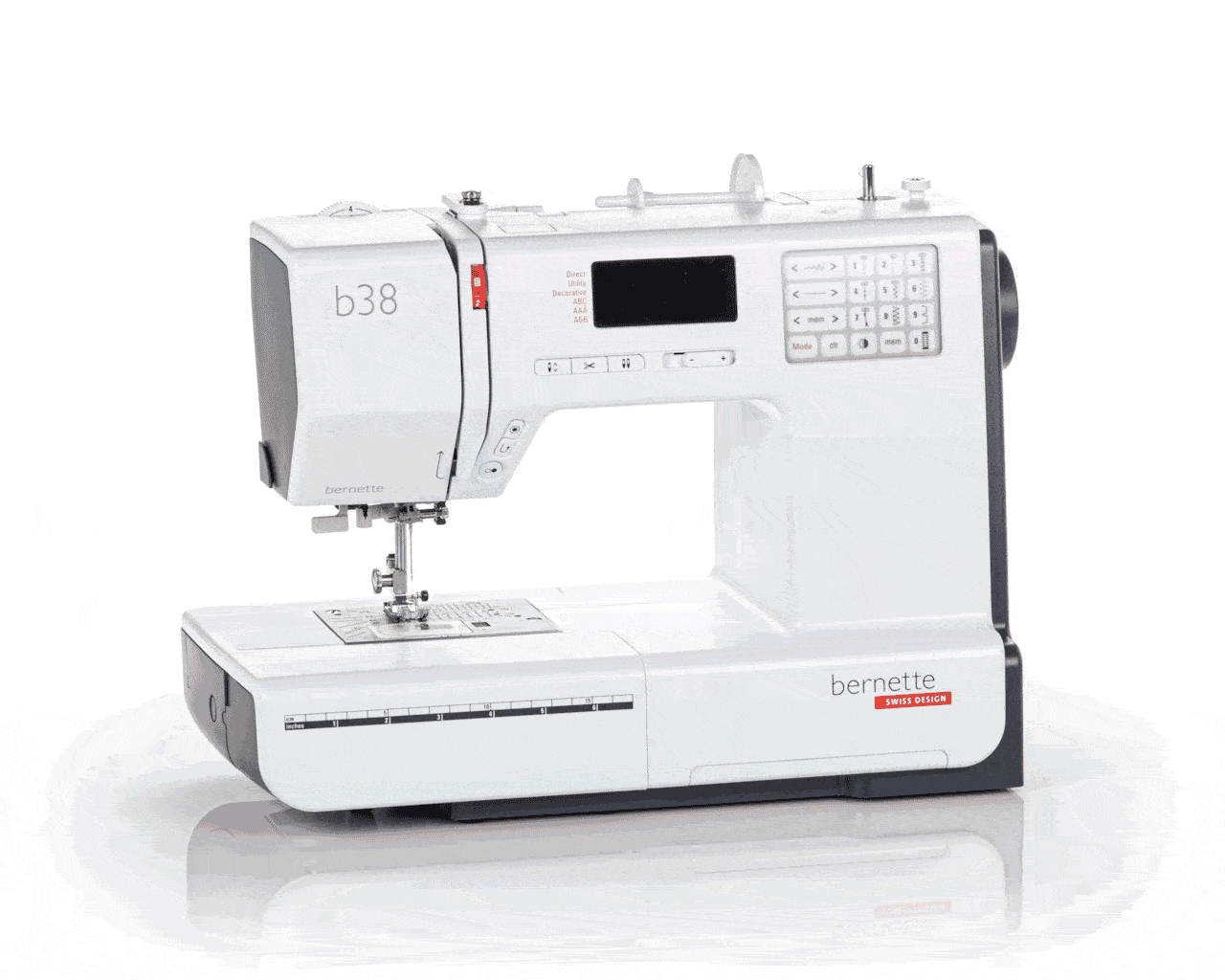 The bernette 38 sewing machine is the top model in the bernette 30 series, offering 394 stitches, including stretch stitches for elastic fabrics, and eight 1-step buttonholes. It features three alphabets, a memory function for storing pattern combinations, and a speed regulator. Additional features include a bright LED light, threader, and automatic and manual thread cutters. The machine comes with eight presser feet and a large extension table.