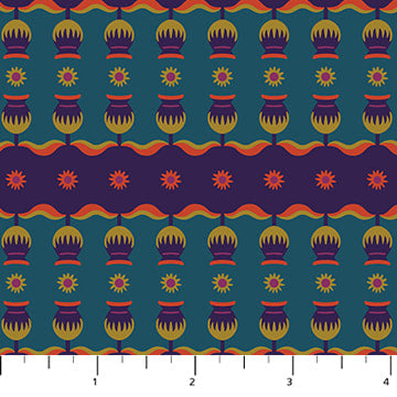 Wandering Eye fabric collection is designed by Kathy Doughty for FIGO Fabrics. Wandering Eye is inspired by the lens of Kathy's camera and her photos of inspiring color combinations, patterns and shapes. This collection features Kathy's trademark mixture of feature prints and supporting geometrics. This harmony of traditional and contemporary styles in warm and cool tones features motifs such as painterly Jacaranda, bursting Agapanthus blooms, decorative gum nut stripes, organic palm tree bark and cinder blocks.